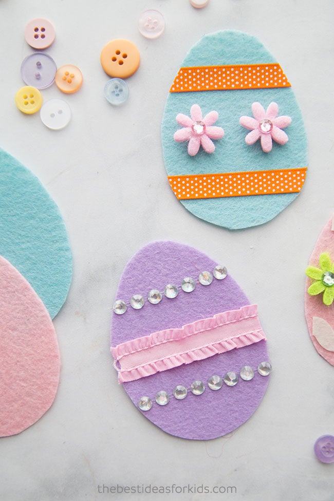 You may be able to find some felt Easter eggs at your local craft store or dollar store during Easter time. You can also make your own. We recommend stiff felt since it will hold up better and can be picked up easily.