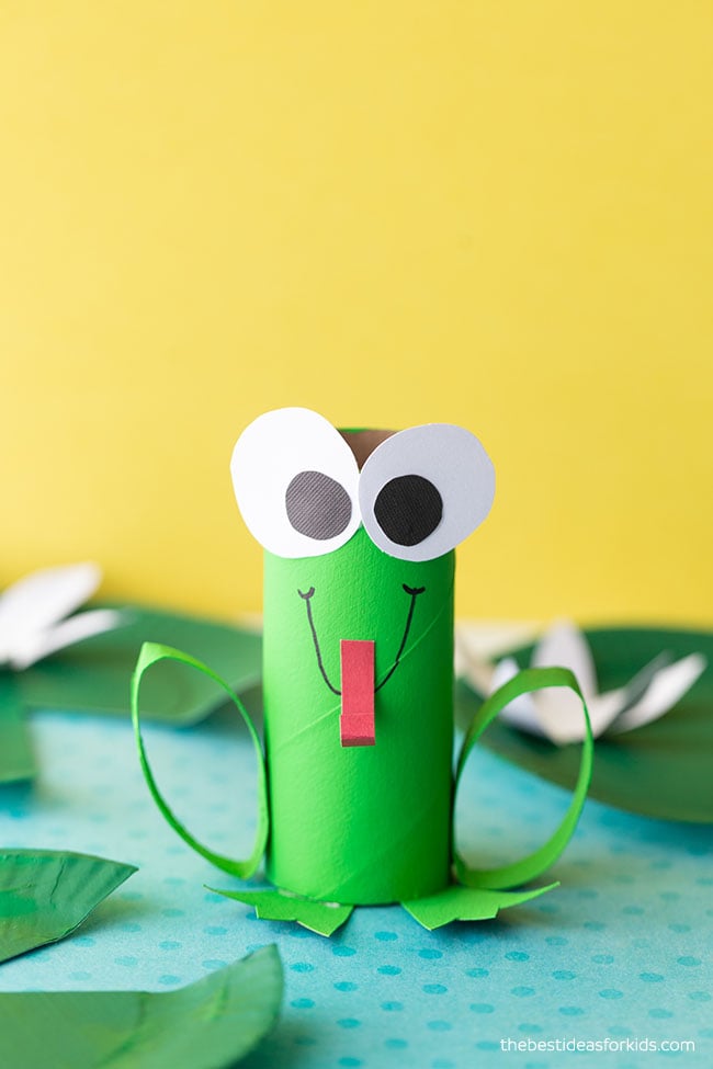 This toilet paper roll frog craft is a fun spring activity using recycled materials. Kids will love making their own frog and you can even make a paper plate lily pad for the frog to hop onto!