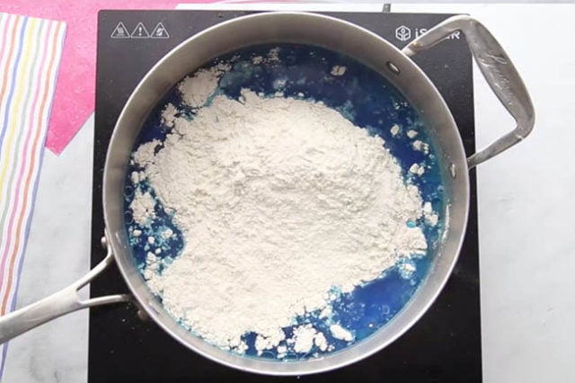 We like to use this liquid food coloring. It makes the playdough much more vibrant than regular food coloring. If you’re using regular food coloring, you’ll need to add in a lot of drops. And don’t mix after you make the playdough – add it into the water instead which is so much easier and less messy!