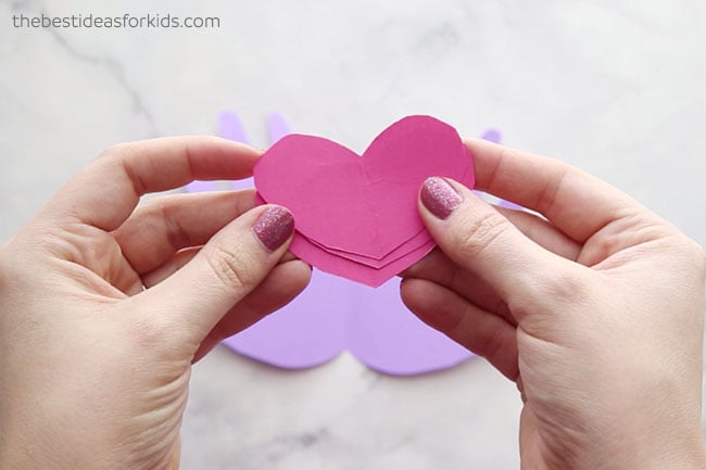 4. Now glue your hearts together and then glue the whole piece into the inside of your handprint card.